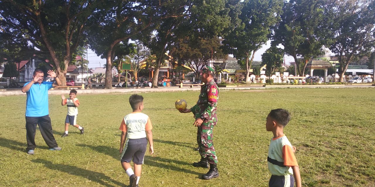 BINJAI,LENSAJABAR.COM – Pelda Mahyudanil Babinsa Koramil 16/BU jajaran Kodim 0203/Langkat melaksanakan Serbuan Teritorial dengan melaksanakan kegiatan Out Bond bersama Siswa siswi SD Negeri 023906 Kel. Damai Kec. Binjai Utara Kota Binjai bertempat di lapangan bola Jln. Sumatera Lingkungan Vlll Kel. Damai Kec. Binjai Utara Kotamadya Binjai. Rabu, (31/7/19).