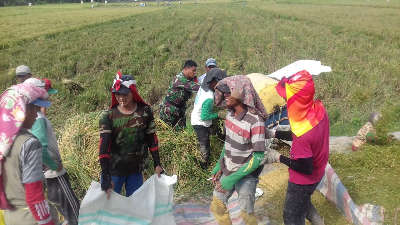 Wujud dukungan TNI khususnya prajurit kewilayahan yaitu Babinsa dalam mendukung ketahanan pangan (Hanpangan), dengan Semangat ikut serta terjun langsung kesawah bantu para petani desa binaannya saat memanen padi, inilah yang dilakukan oleh Serda Sofyan Lomboan kepada para petani warga desa binaannya.