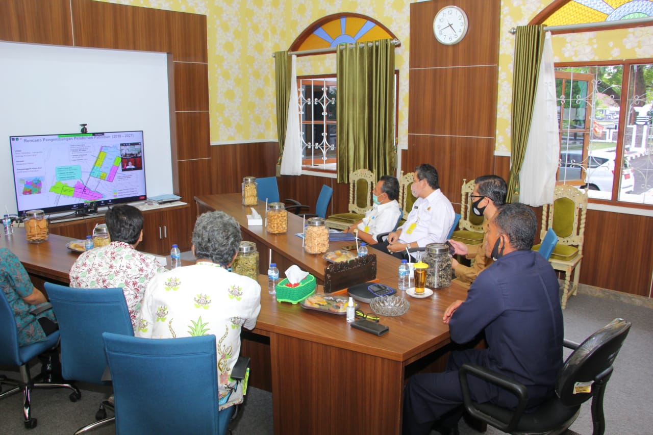 SUBANG, LENSAJABAR,COM- Bupati Subang H Ruhimat didampingi Wakil Bupati Subang Agus Masykur Rosyadi, Kadis PUPR, Kasatpoldam menghadiri kegiatan video conference dengan Menko Kemaritiman RI Jenderal TNI Luhut Binsar Pandjaitan, Menteri Perhubungan RI Budi Karya Sumadi membahas tentang progres konstruksi pembangunan pelabuhan Patimban Subang dan rencana pengembangan pelabuhan Patimban, Kamis (3/8/20).