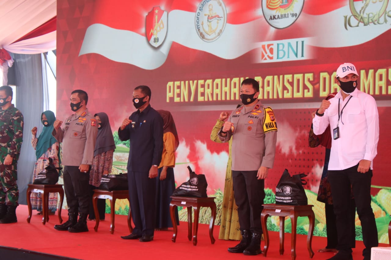 Dalam kesempatan tersebut diserahkan bantuan sosial secara simbolik dan masker sebanyak 2000 paket yang diterima oleh perwakilan warga masyarakat. Selanjutnya dilaksanakan penanaman bibit jagung secara serentak, oleh Kabarhakam, Ketua Altar 89, Ketua Desta (Ikatan Alumni Akmil) Brigjen TNI Mochammad Hasan, Ketua Morogama (Ikatan Alumni AAL) Laksda TNI Coky Hutabarat, Ketua Icarus (Ikatan Alumni AAU) Marsma TNI Eding Sungkana, Ketua Dharana Lastarya (Ikatan Alumni Akpol) Irjen Pol Risyapudin. di dampingi oleh Bupati, dan Pejabat BNI. Acara ditutup dengan makan siang bersama secara bancakan sebagai simbol guyub sauyunan menuju Indonesia maju.