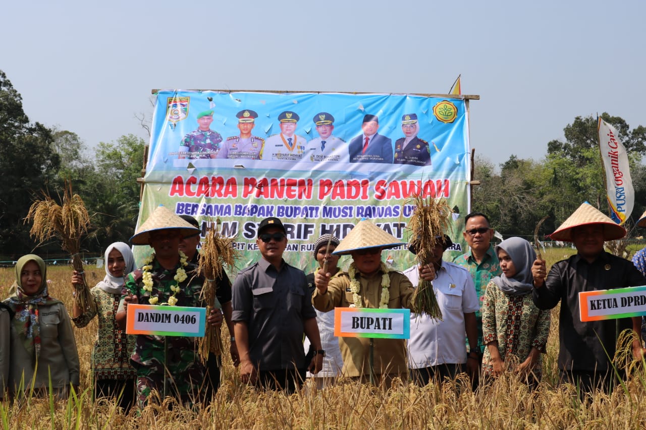 Dandim 0406/Mura Dampingi Bupati Muratara Panen Raya Padi Sawah