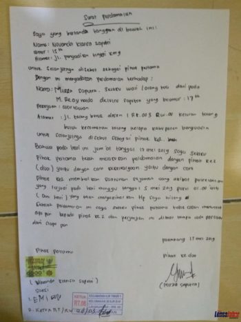 Surat perdamaian nya sudah ditandatangani oleh kedua belah pihak bahkan hp yg hilang sudah diganti dengan yang baru.