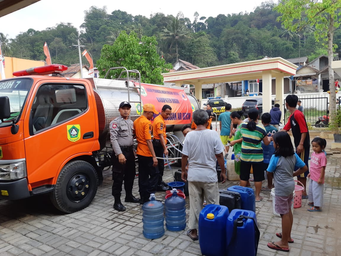 Polsek Nanggung bekerja sama dengan Dinas Kab. Bogor memberikan Air bersih sebanyak 20.000.000 liter dengan menggunakan kendaraan Roda empat.
