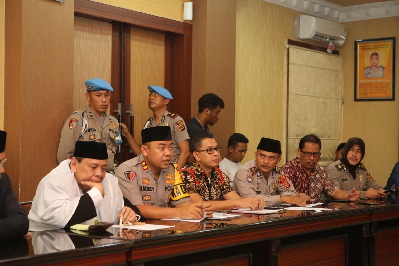 BOGOR,LENSAJABAR.COM– Kapolres Bogor AKBP Andi Moch Dicky bersama Ketua MUI Kabupaten Bogor KH Mukri Aji melakukan mediasi dengan pihak FUI Bogor Raya di Aula Nurul Afandi Polres Bogor. Jum’at ( 2/8/ 2019).