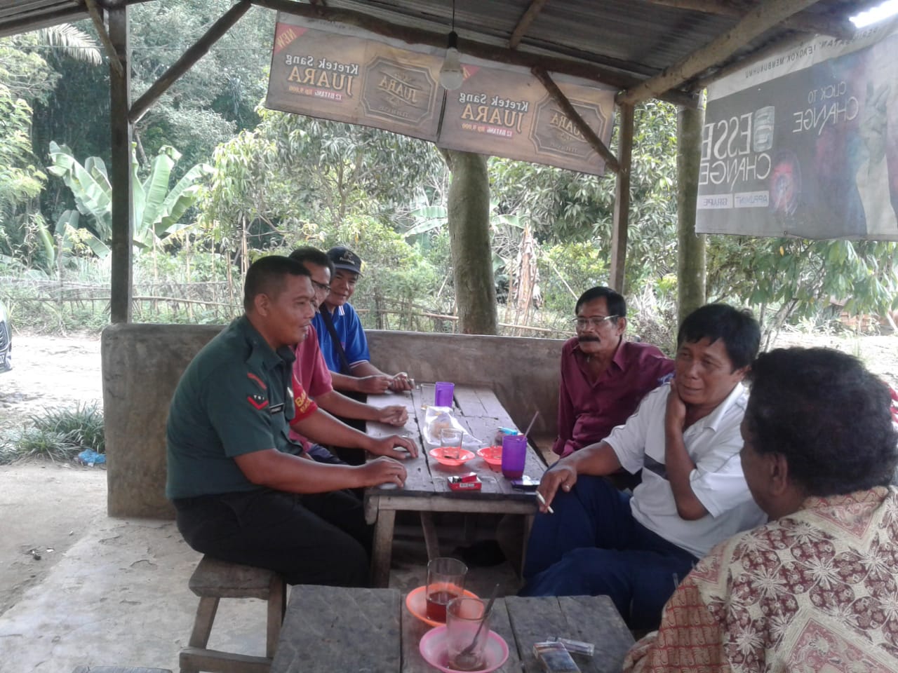 SIMALUNGUN,LENSAJABAR.COM – Bintara Pembinaan Desa (Babinsa) Koramil 05/Serbelawan Kodim 0207/Simalungun Kopda Amat Prawadi melaksanakan komsos dengan Sekdes Bapak Rustam Damanik dan warga di Nagori Nagur Usang Kecamatan Tapian Dolok Kabupaten Simalungun guna menjalin hubungan yang harmonis dengan warga binaan.Kamis (01/08/2019)