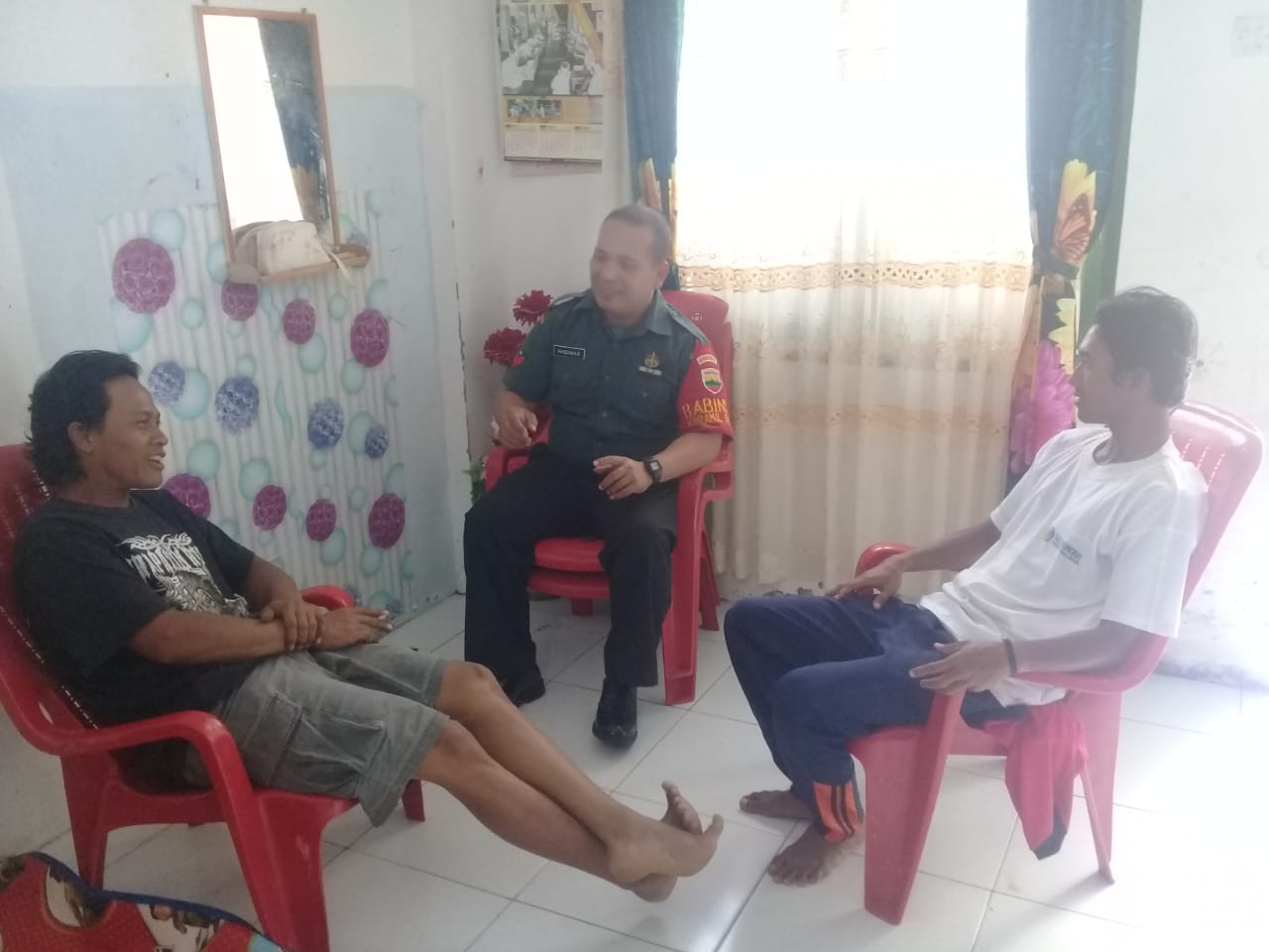 P.SIANTAR,LENSAJABAR.COM – Babinsa Koramil 04/Siantar Barat Kodim 0207/Simalungun Koptu Hadimin Ramud melaksanakan komsos bersama Bapak Hendra Sanjaya dan Bapak Yono membahas masalah keamanan lingkungan di Jl. Madura Kelurahan Bantan Kecamata Siantar Barat. Selasa (30/07/2019).