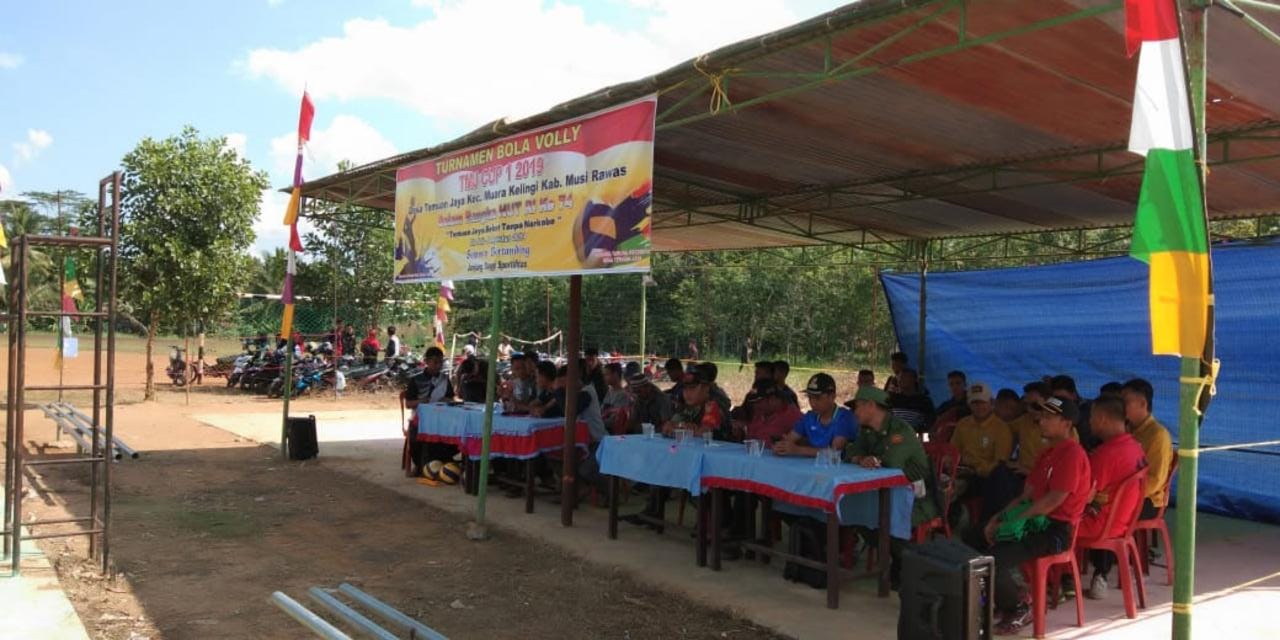 MURA,LENSAJABAR.COM – Bintara Pembina Desa (Babinsa) Koramil 406-05/Muara Kelingi Serda M. Dahri menghadiri pembukaan turnamen bola volly se-Kecamatan Muara Kelingi Kab. Musirawas dalam rangka memperingati HUT RI ke-47 tahun 2019 yang berlangsung di lapangan Bola Volly Desa Temuan Jaya Kec. Muara Kelingi. Minggu (28/07/2019).