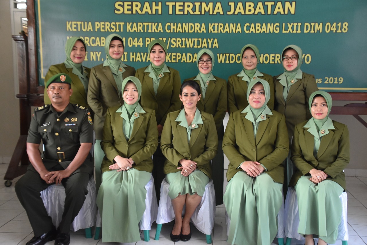 Berkaitan dengan Serah Terima Jabatan (Sertijab) Komandan Kodim 0418/Palembang yang dilaksanakan sebelumnya, secara otomatis kepengurusan Persatuan Istri Prajurit (Persit) juga ikut menyesuaikan. Dan Sertijab Ketua Persit KCK Cabang LXII Kodim 0418/Palembang ini merupakan proses yang wajar dalam dinamika sebuah organisasi, yang senantiasa terjadi secara berkelanjutan dan pergantian jabatan merupakan keharusan dalam rangka menyesuaikan kinerja organisasi.