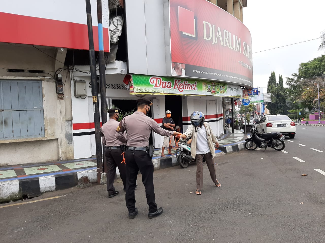 Di tempat yang sama Personel Sat Sabhara Polres Ciamis Polda Jabar diterjunkan melaksanakan patroli dialogis penerapan masa adaptasi kebiasaan baru. Berpatroli di pertokoan dan tempat dimana banyak masyarakat berkumpul.