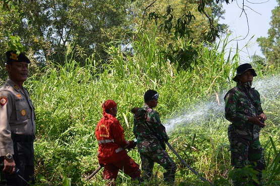 “Insya Allah, sore ini api bisa dipadamkan, ada dua titik api, kita tidak ingin meluas jadi seluruh kemampuan kita kerahkan dimana ada titik api, ada satu titik aja langsung kita kejar dan kita padamkan”, ujar Kolonel Sonny. (Penrem Gapo/RSP).
