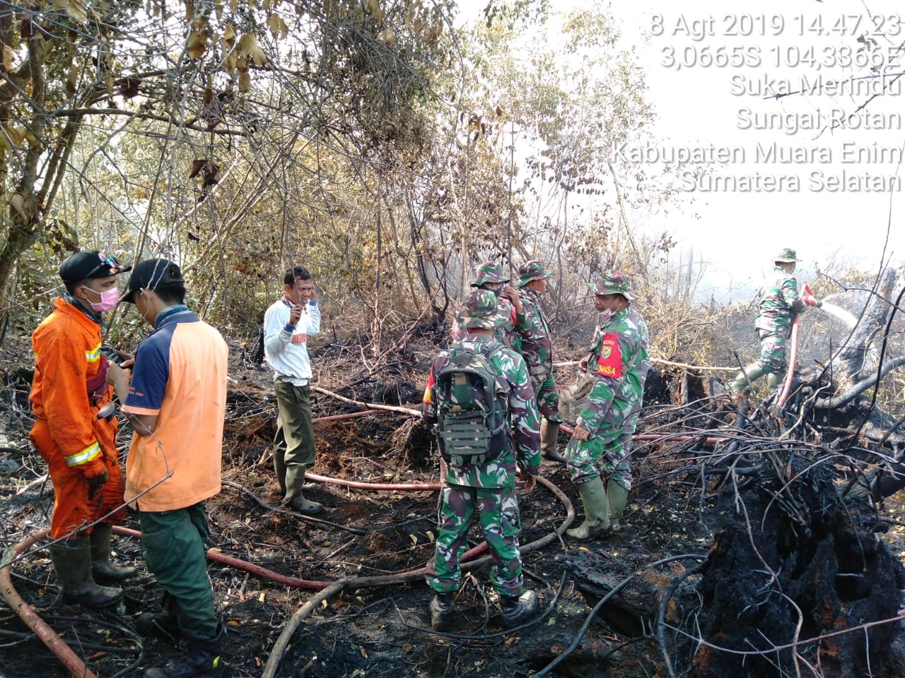 Sementara itu, Satgas Karhutla bersama Kepolisian juga terus melakukan patroli dan penyelidikan penyebab terjadinya kebakaran di lahan tersebut. Dugaan sementara titik awal api di Desa Suka Merindu, Kec. Sei. Rotan Kab. Muara Enim berasal dari gubuk yang digunakan oleh masyarakat untuk mencari kayu didalam lahan gambut.(Pendam II Swj/RSP).