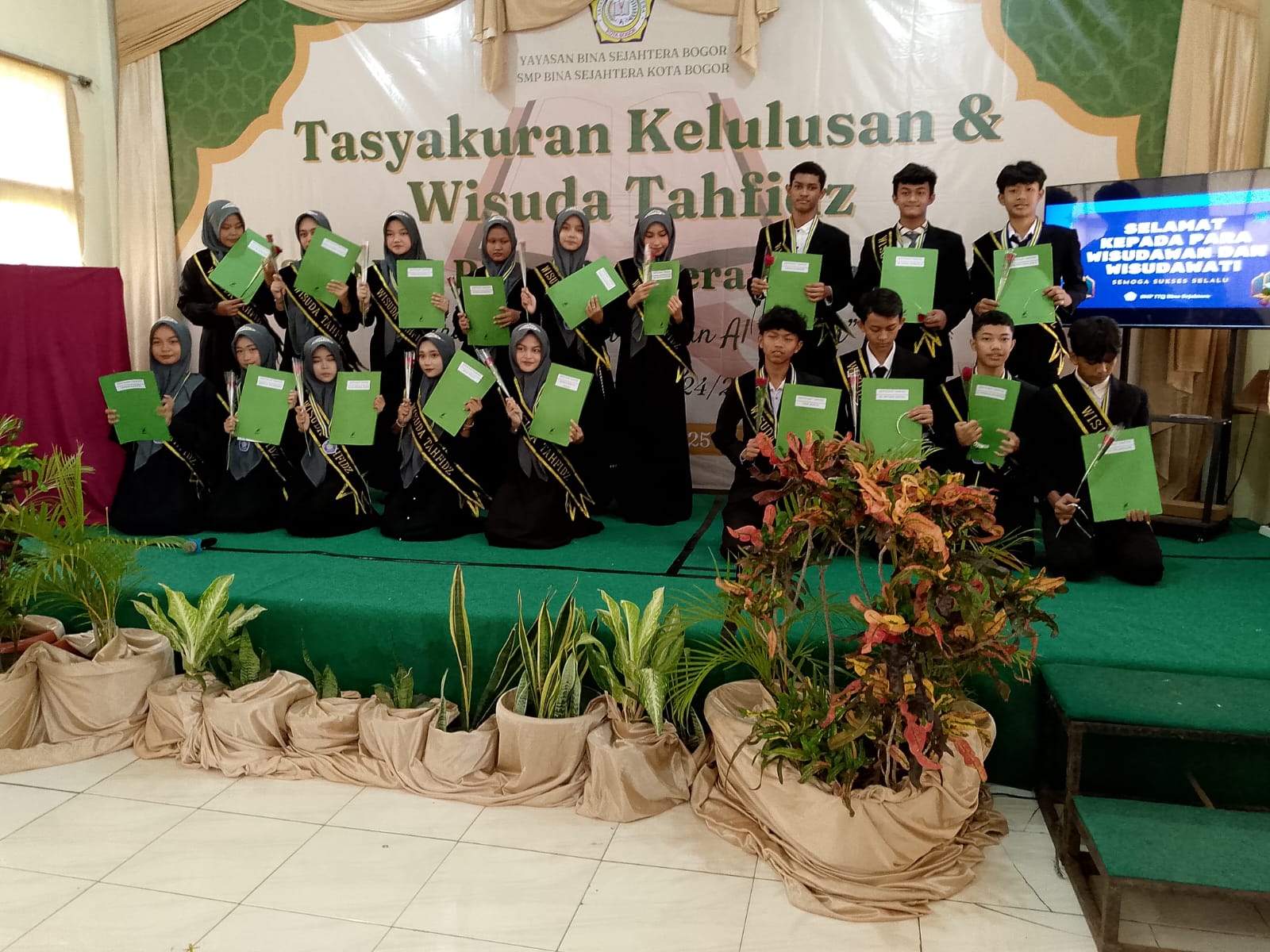 BOGOR, LENSAJABAR.COM – SMP Bina Sejahtera Unit Radar Dramaga mengadakan kegiatan Tasyakuran kelulusan Kelas 9 sekaligus wisuda Tahfiz Al-quran pada Sabtu (21/6/25).