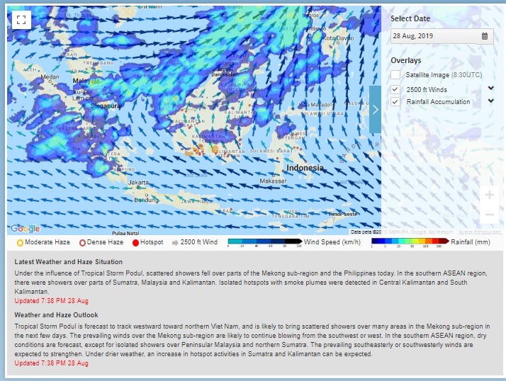 Dari hasil pantauan satelit lapan untuk sebaran hot spot pada pagi ini (29/8/2019) hot spot di wilayah Sumsel tidak ada/tidak kelihatan sama sekali. Semuanya ini dampak turunnya hujan yang turun beberapa saat lalu di bumi Sriwijaya ini. (Riyan/Penrem Gapo).